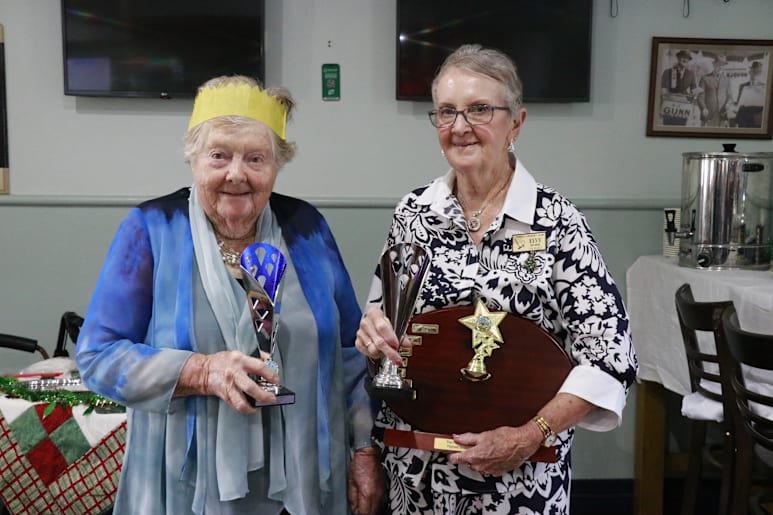Major Trophy awards for the most games won during the year went to the following: Ladies Aussie Croquet Winner Elvy Quirk, Runner Up Fay Picker, Ladies Golf Croquet Winner Elvy Quirk, Runner Up Robin Pols, Mens Aussie Croquet Winner Peter West Runner Up John Browne, Mens Golf Croquet Winner Noel Jolliffe, Runner Up Kevin Rubie. Congratulations must go to those players.